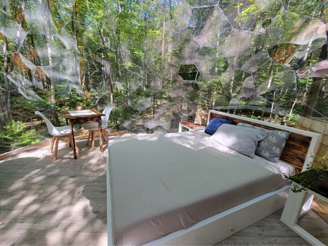 The bubble also features a private jacuzzi installed in a gazebo, for total relaxation, summer or winter. For maximum comfort, it is equipped with electric heating and heated mattress covers for very cold nights.
